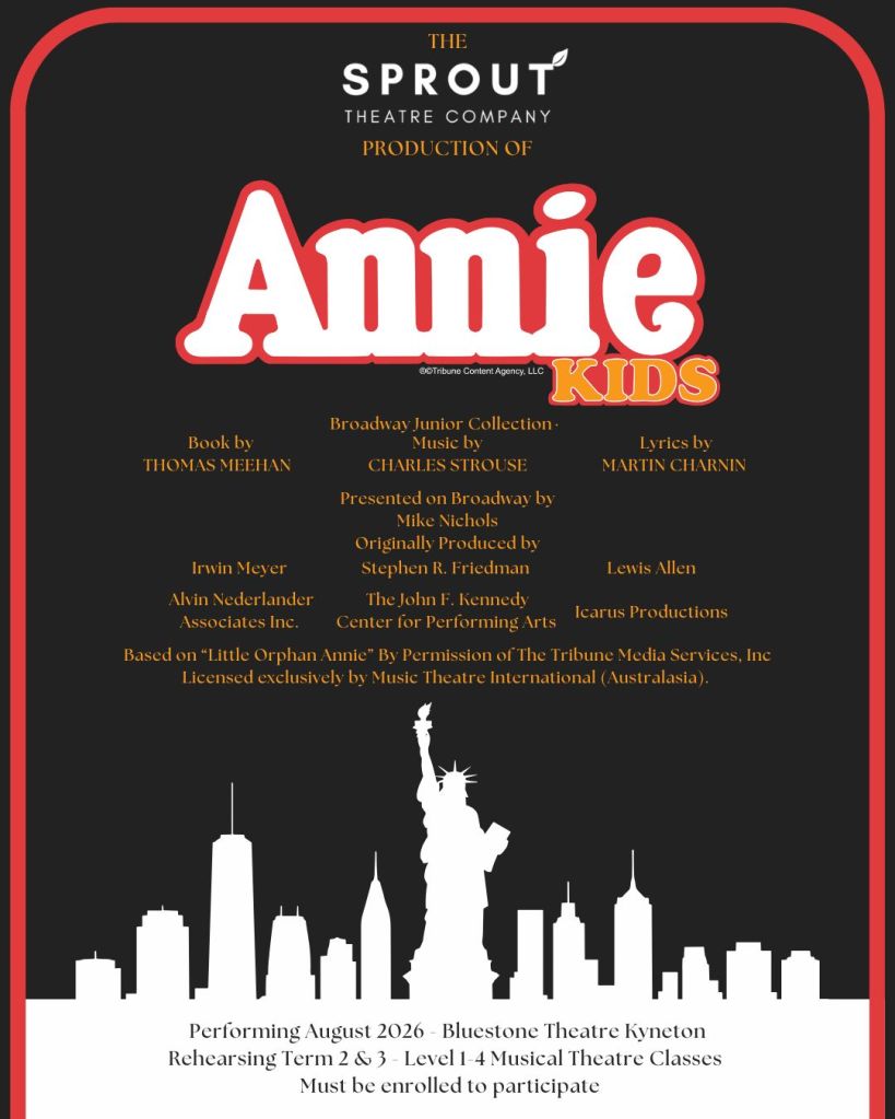 Level 1-4 Show – Annie KIDS! Performing August 2026 at Bluestone Theatre Kyneton.